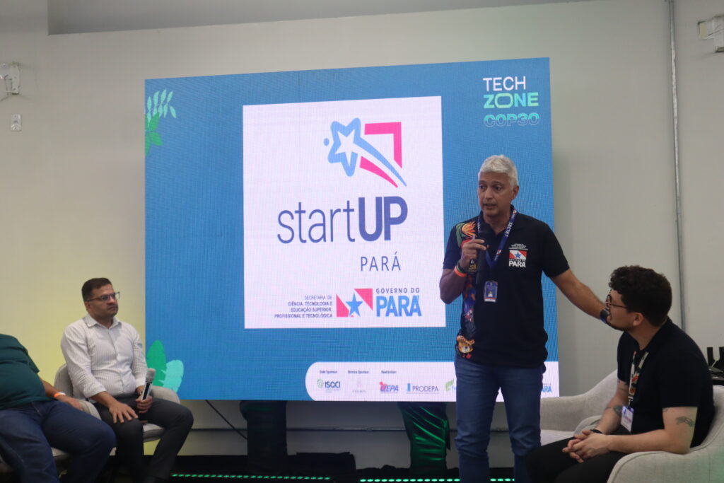 Na tarde desta quinta-feira (13), o Programa StartUp Pará foi um dos protagonistas do painel “Ações de inovação em bioeconomia”, realizado durante a Techzone – evento promovido pelo Parque de Ciência e Tecnologia do Guamá (PCT Guamá) e pela Fundação Guamá, integrado à programação da 30ª Conferência das Partes (COP30). A iniciativa foi apresentada pela Secretaria de Estado de Ciência, Tecnologia e Educação Superior, Profissional e Tecnológica (Sectet), que evidenciou os resultados do programa no fortalecimento do empreendedorismo inovador no Pará.